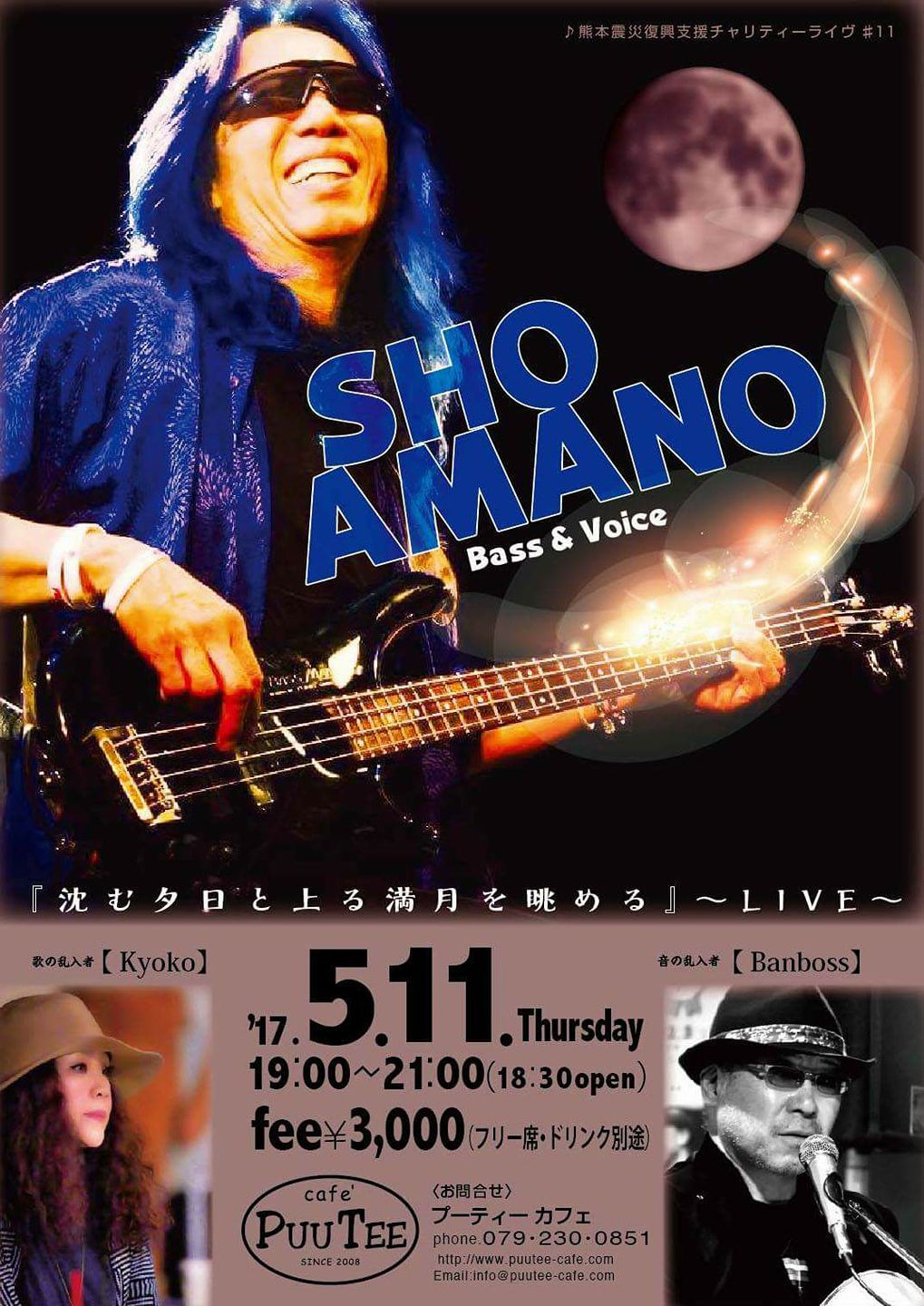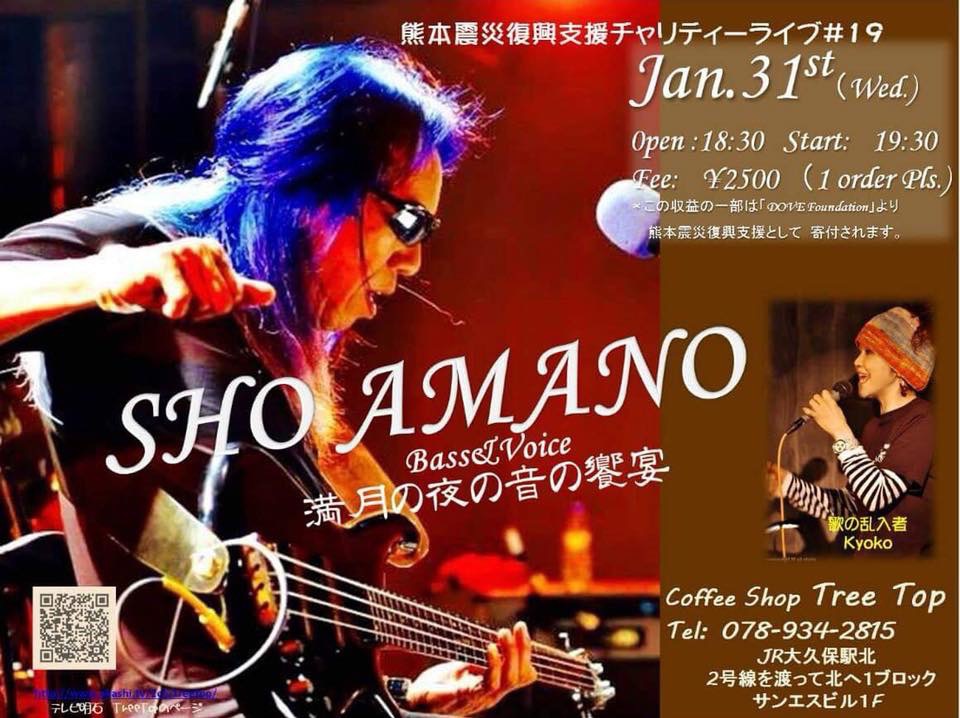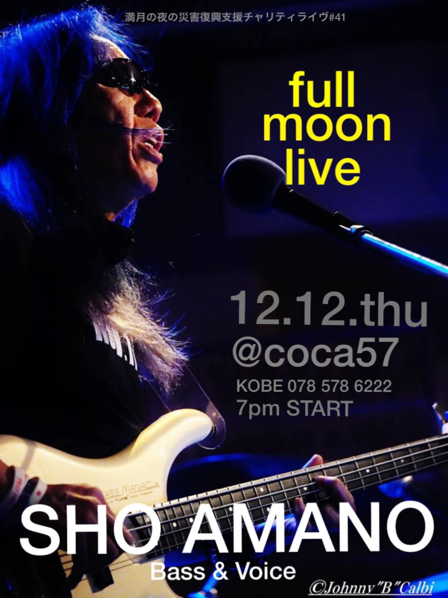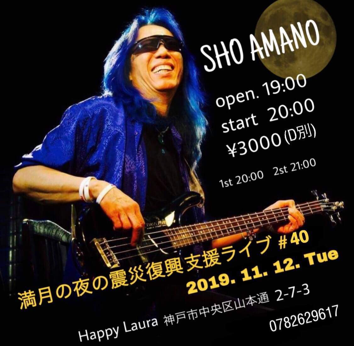 11 @ bar chiba(KOBE 阪神御影駅高架沿いを西へ300m 徒歩5分)"SHO AMANO ● Full Moon Live"〜 満月の夜の災害復興支援チャリティライヴ#42 〜