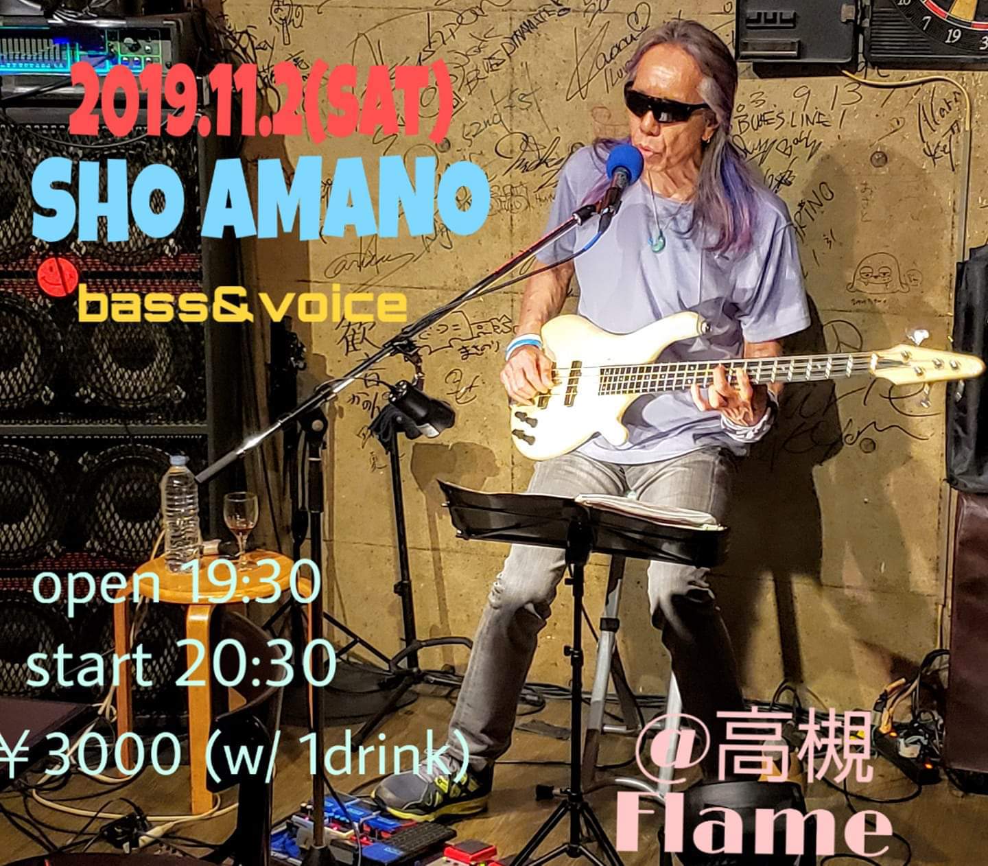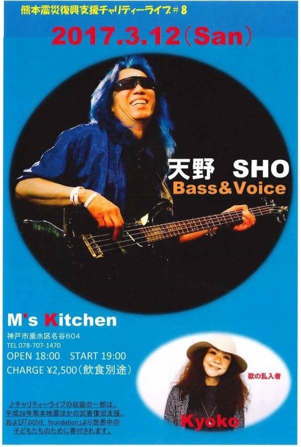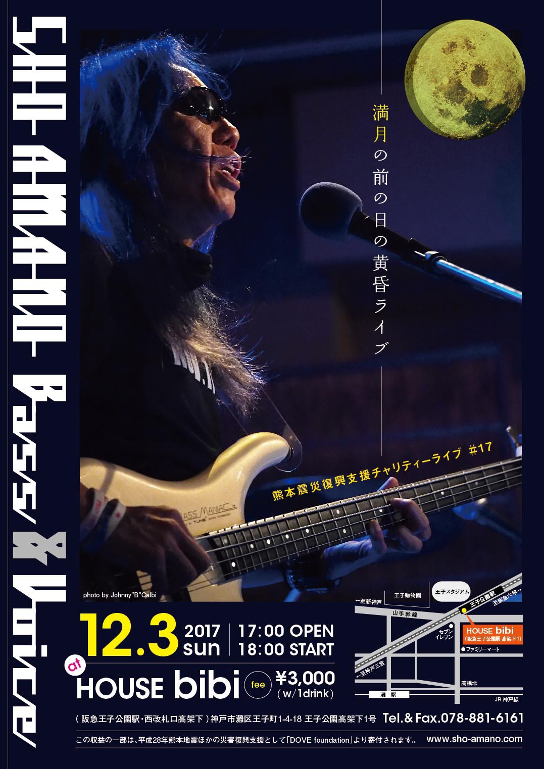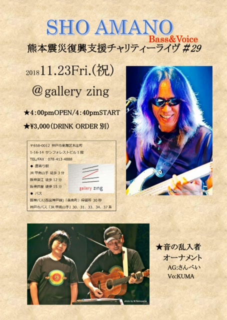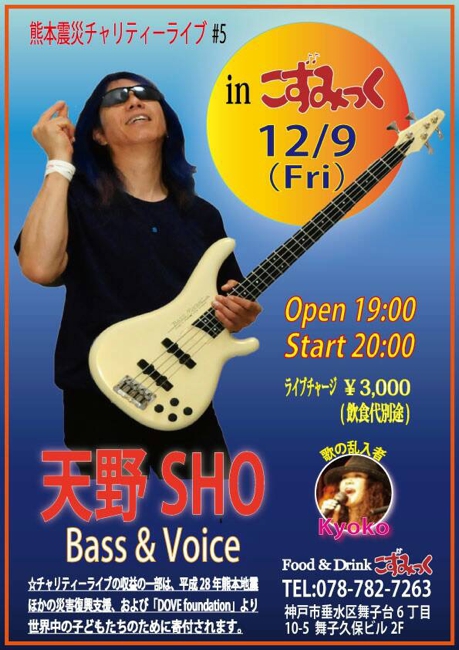 11 @ bar chiba(KOBE 阪神御影駅高架沿いを西へ300m 徒歩5分)"SHO AMANO ● Full Moon Live"〜 満月の夜の災害復興支援チャリティライヴ#42 〜