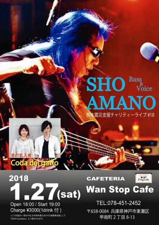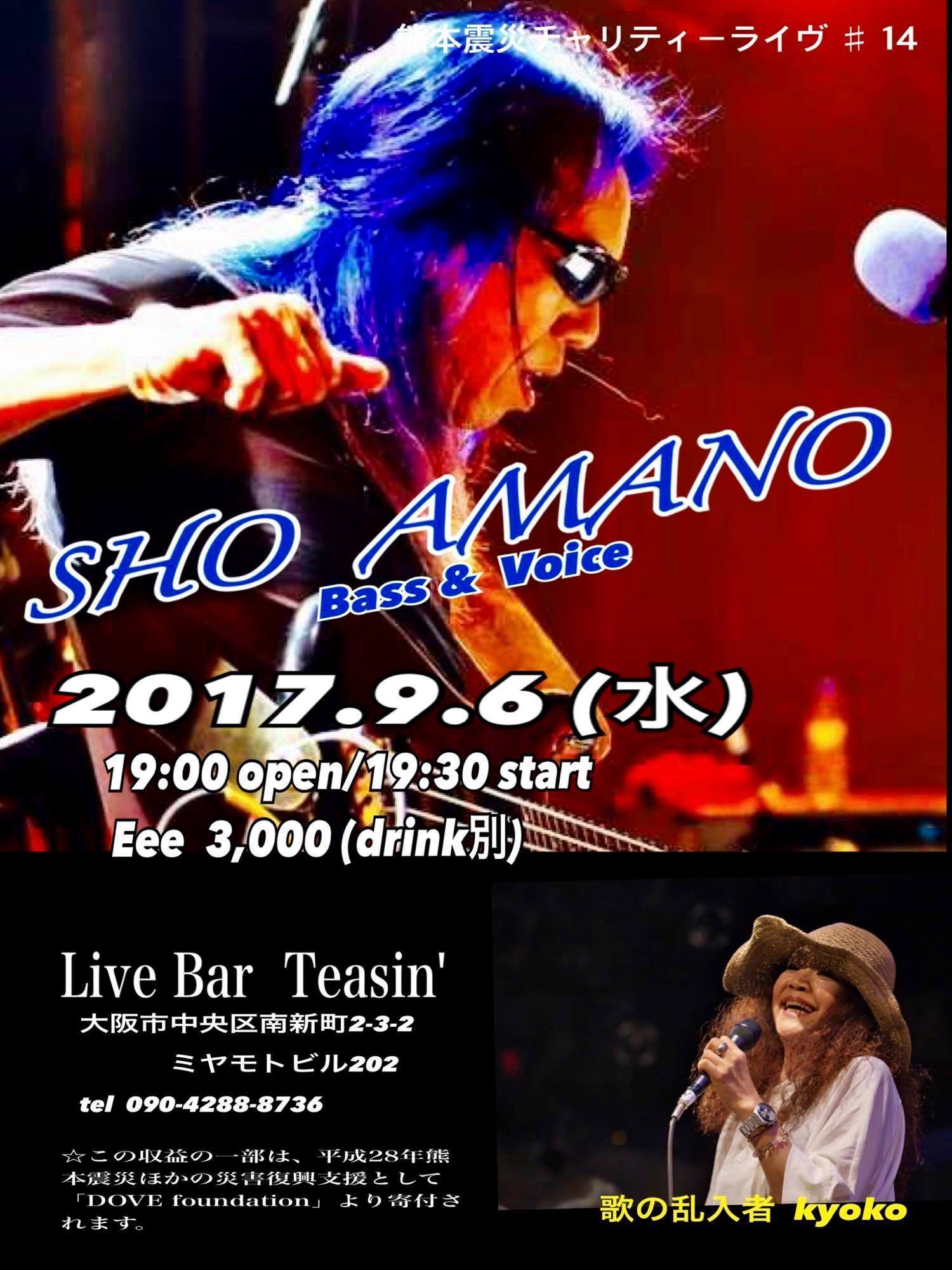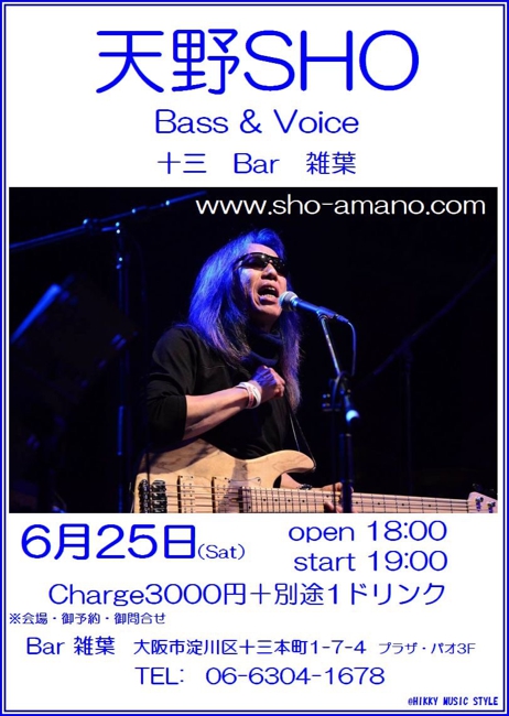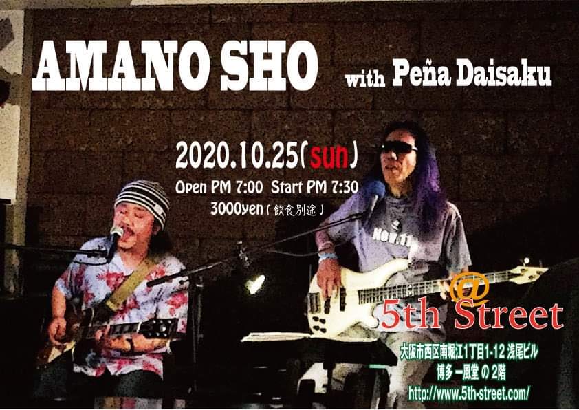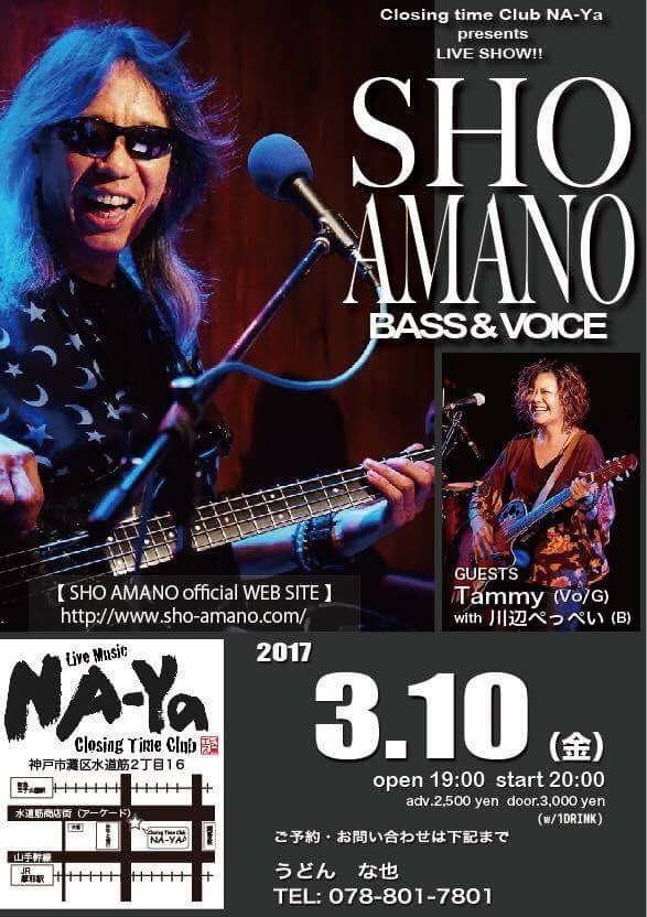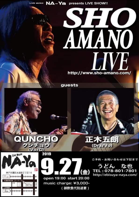 27 @ Live Music NA-YA(KOBE 水道筋)"SHO AMANO LIVE" ★special guest:茶木みやこ (Vo/G) 【 延期 】