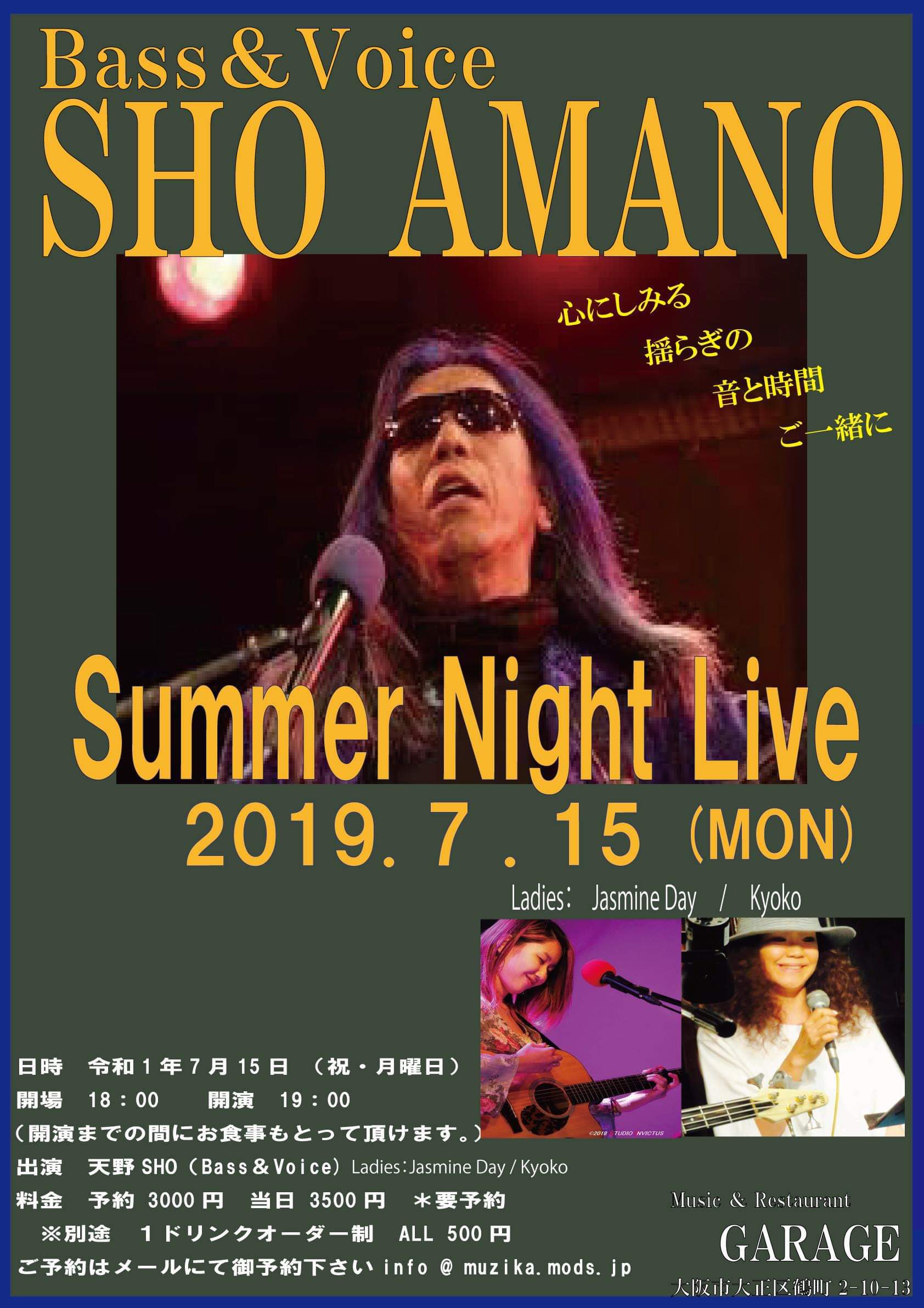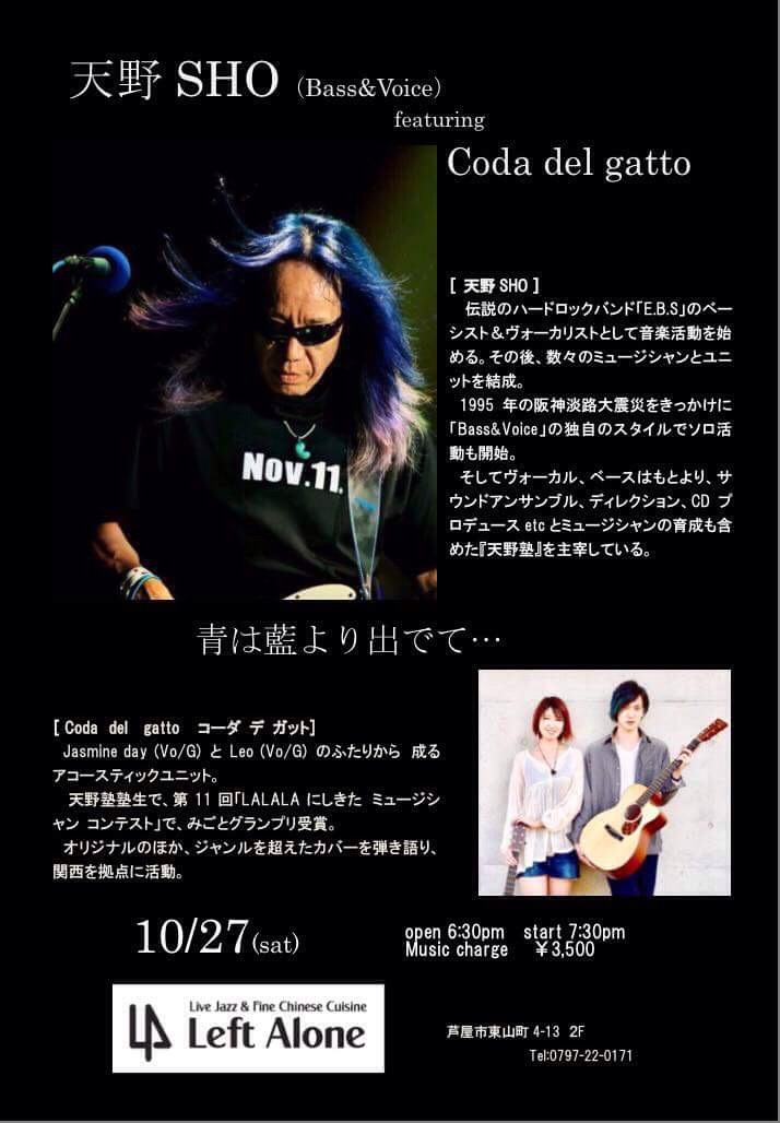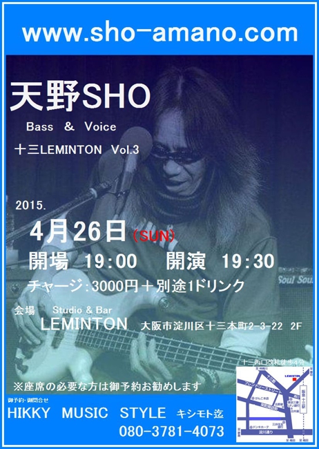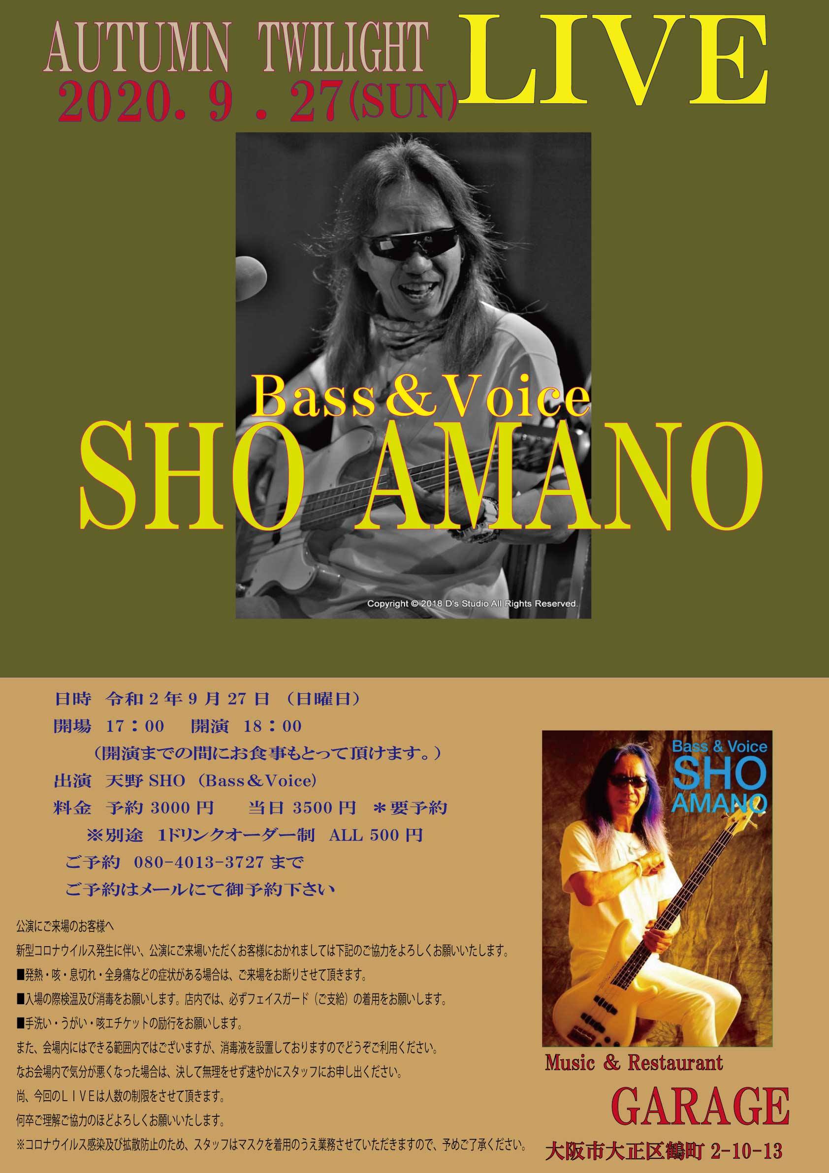 27 @ Live Music NA-YA(KOBE 水道筋)"SHO AMANO LIVE" ★special guest:茶木みやこ (Vo/G) 【 延期 】