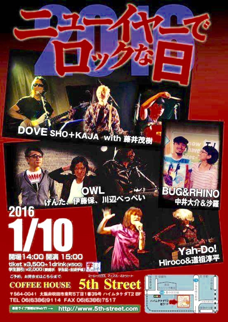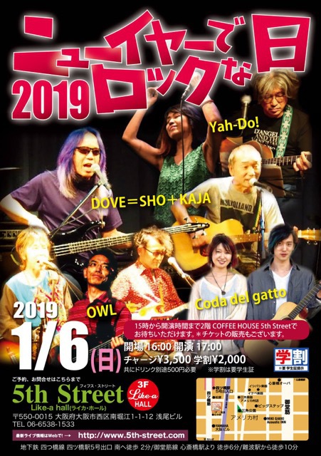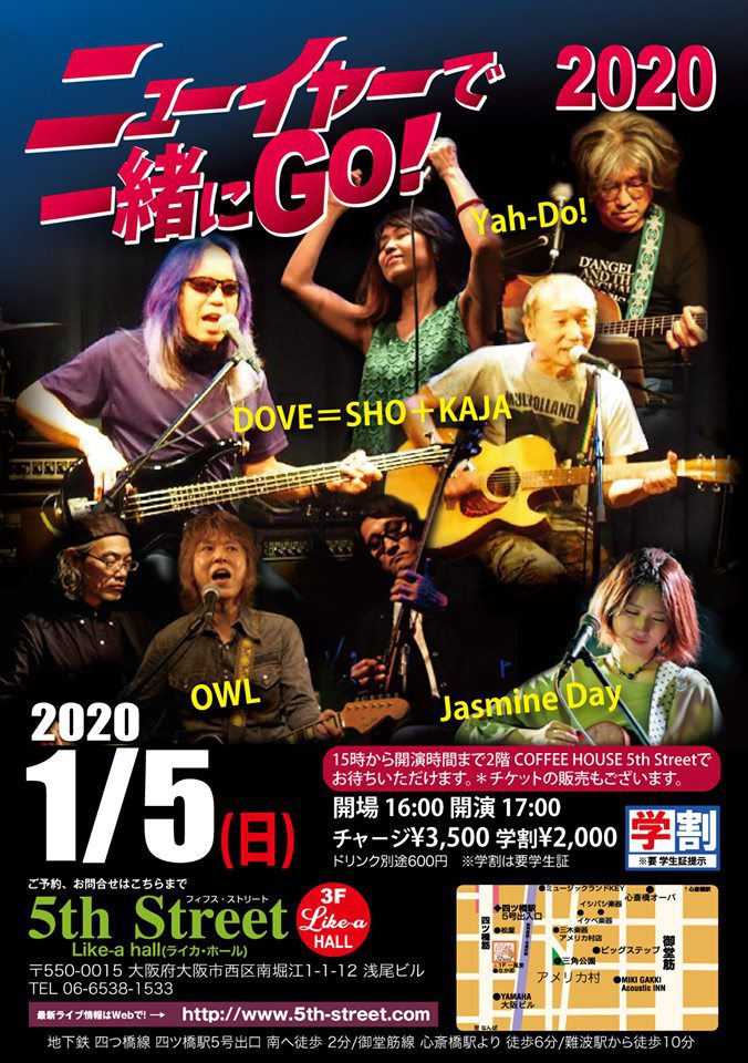 10 @ 5th Street(大阪 南堀江)"ニューイヤーでロックな日!2021" w/ DOVE=SHO+KAJA / Yah-Do! / OWL / Jasmine Day 【 無観客ライヴ配信 】