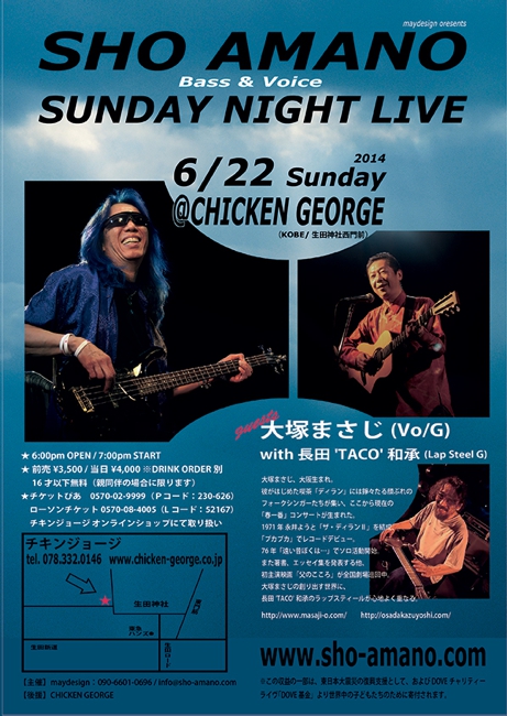 22 @ CHICKEN GEORGE(神戸三宮・生田神社西)"SHO AMANO ☆ SUNDAY NIGHT LIVE”