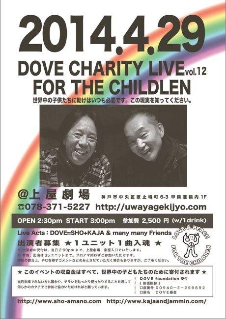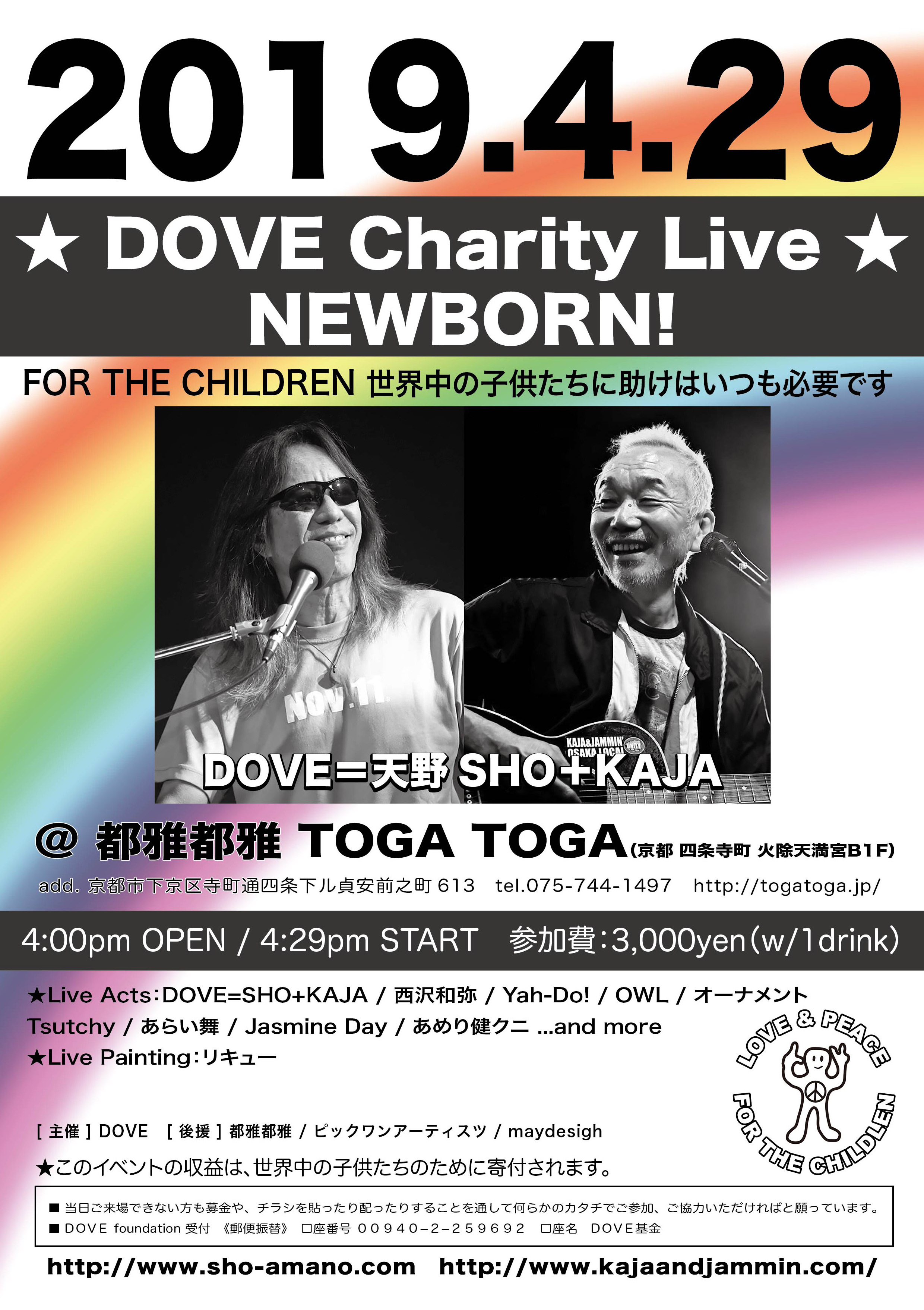 29 "DOVE Charity Live NEWBORN!〜 KOBE LIVE HOUSE AID〜" @ Wメリケン波止場(KOBE ハーバーランド ホームセンターコーナン駐車場東隣) ★Live Acts:DOVE=SHO+KAJA 【 無観客ライヴ配信 】