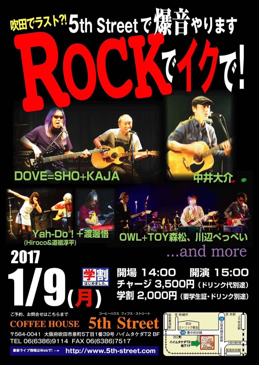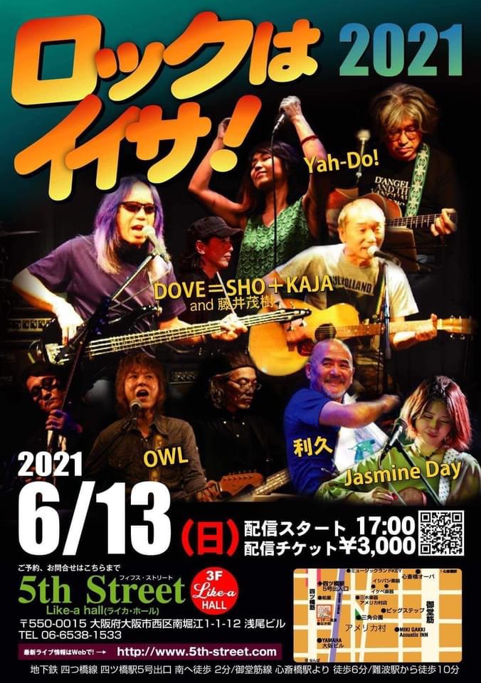 13 @ 5th Street(大阪 南堀江)"ロックはイイサ!" ★w/ DOVE=SHO+KAJA / Yah-Do! / OWL / Jasmine Day / リキュー 【 無観客配信ライブ 】