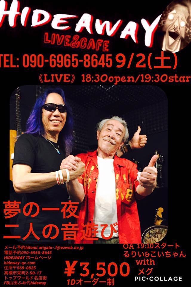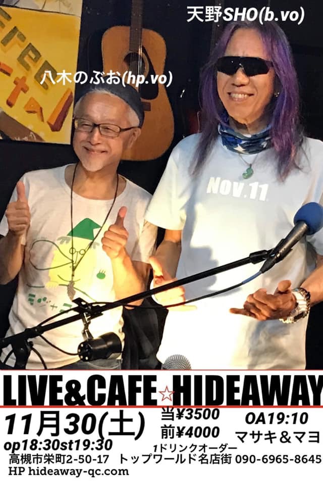 24 @ HIDEAWAY(高槻)★w/ 八木のぶお(Hrp/Vo) 【 中止 】