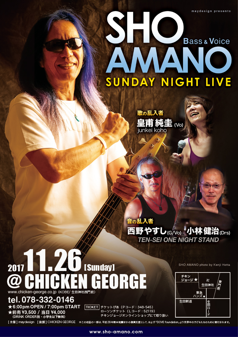 30 @ CHICKEN GEORGE(KOBE 三宮 生田神社西門前)"SHO AMANO ☆ SUNDAY NIGHT LIVE"【 中止 】