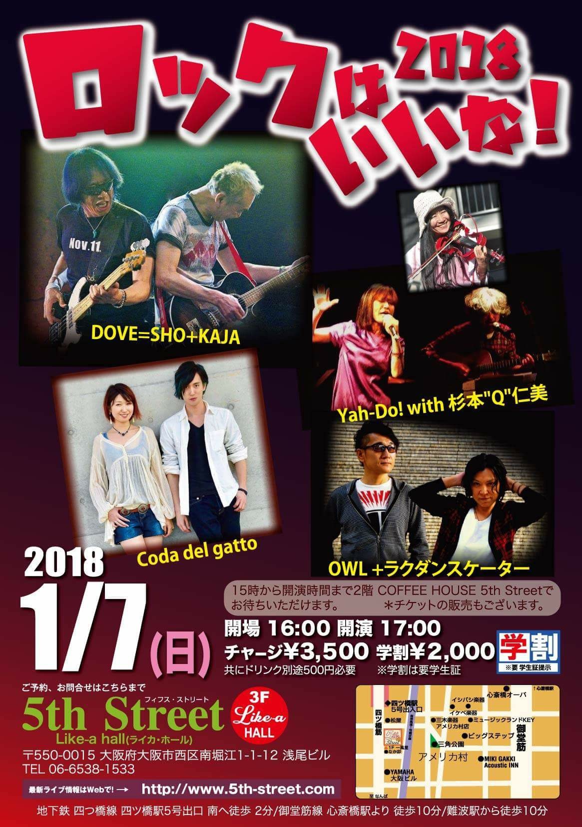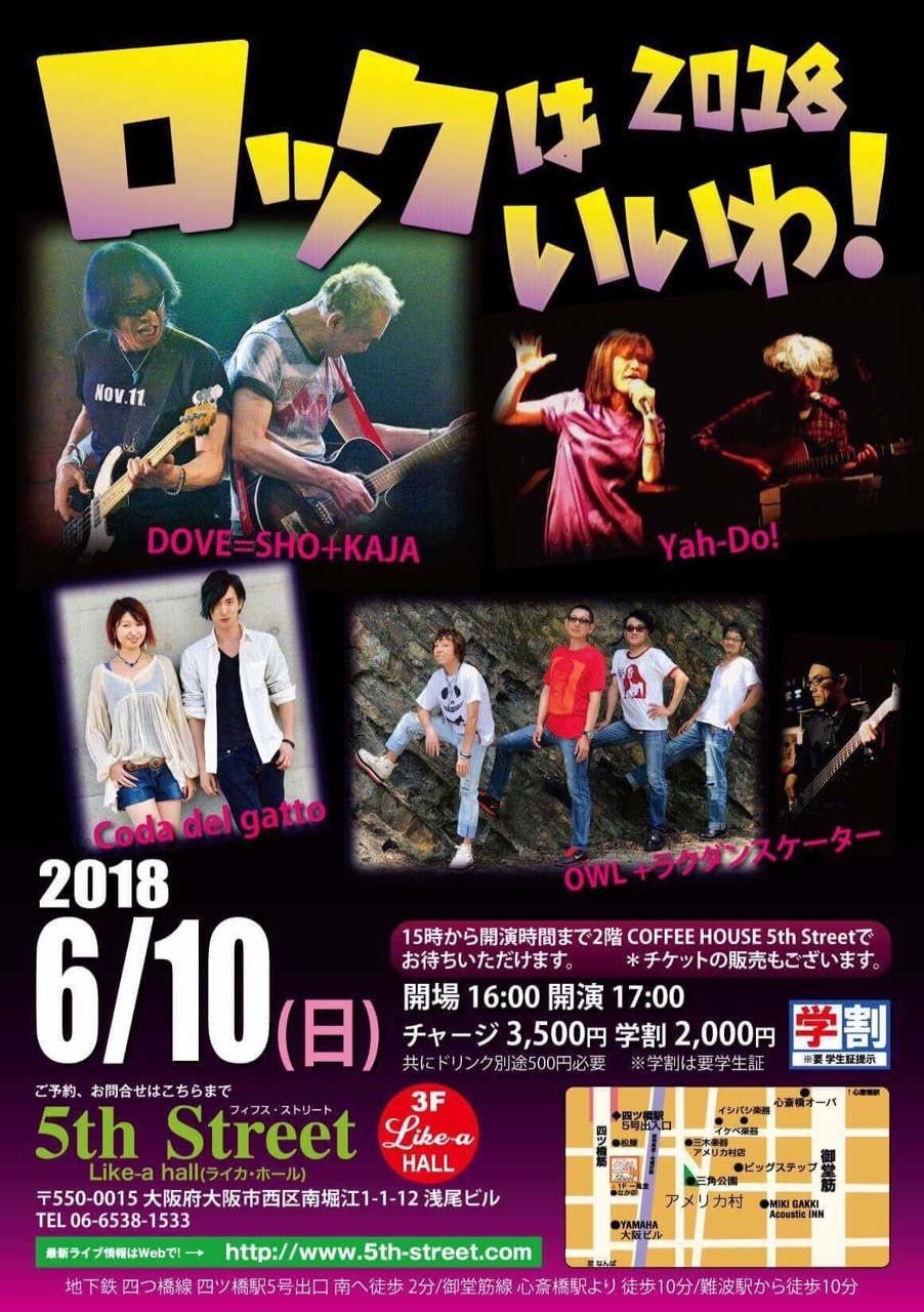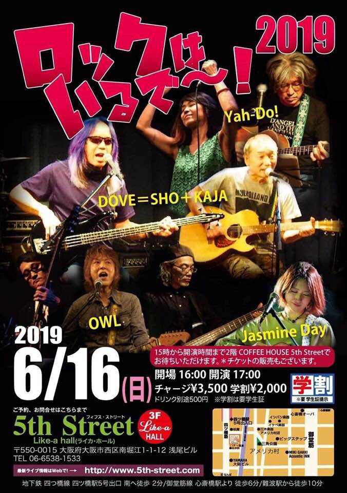 07 @ 5th Street(大阪 南堀江)"ROCKはいいな〜!" ★w/ DOVE=SHO+KAJA / Yah-Do! / OWL / Jasmine Day 【 無観客ライヴ配信 ]