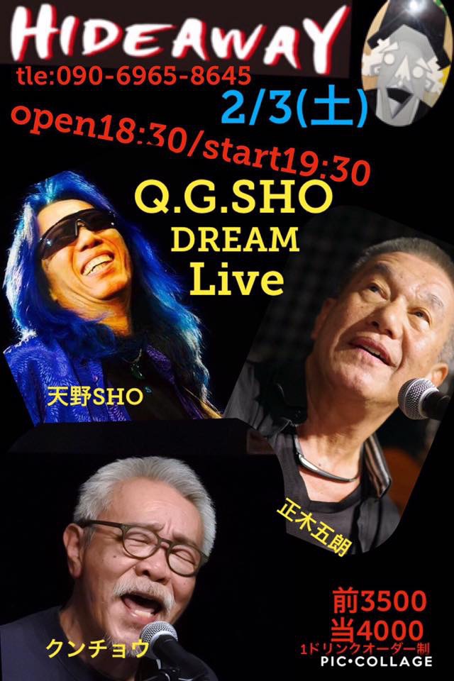 24 @ HIDEAYAW(高槻)"Q.G.SHO" ★w/ QUNCHO(G/Vo) / 正木五朗(Drs/Vo) 【 限定10名様 / ライヴ配信 】