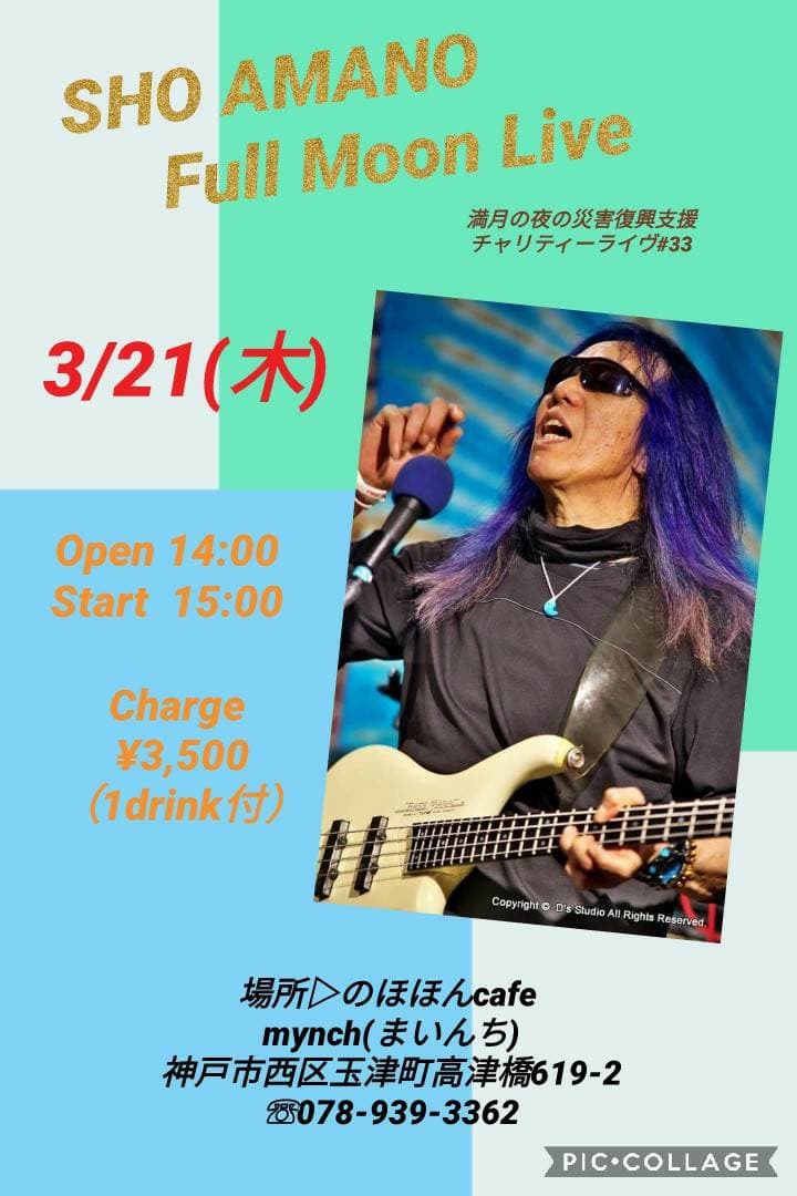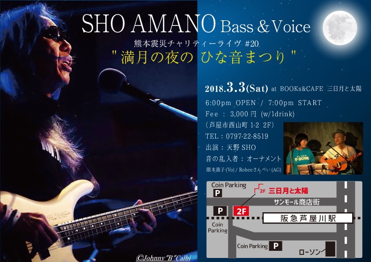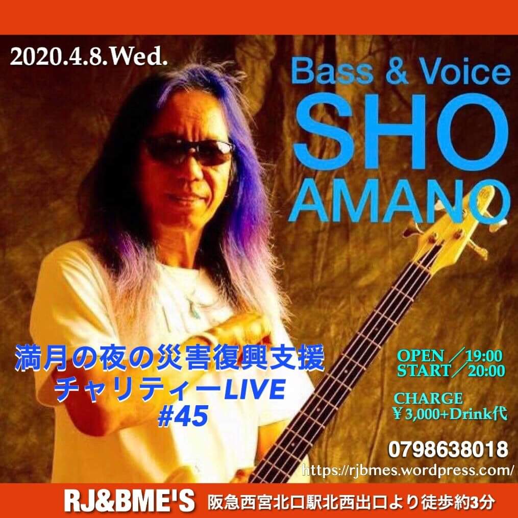 08 @ RJ&BME'S(西宮北口)"SHO AMANO ◯ Full Moon Live" 〜 満月の夜の災害復興支援チャリティライヴ〜 【 中止 】