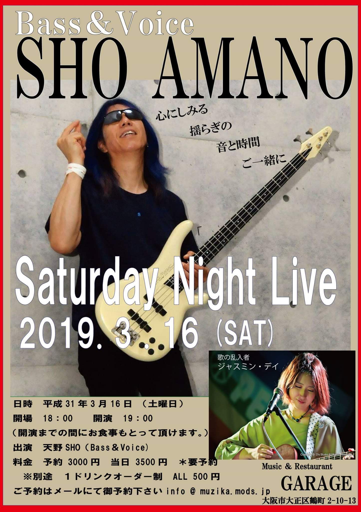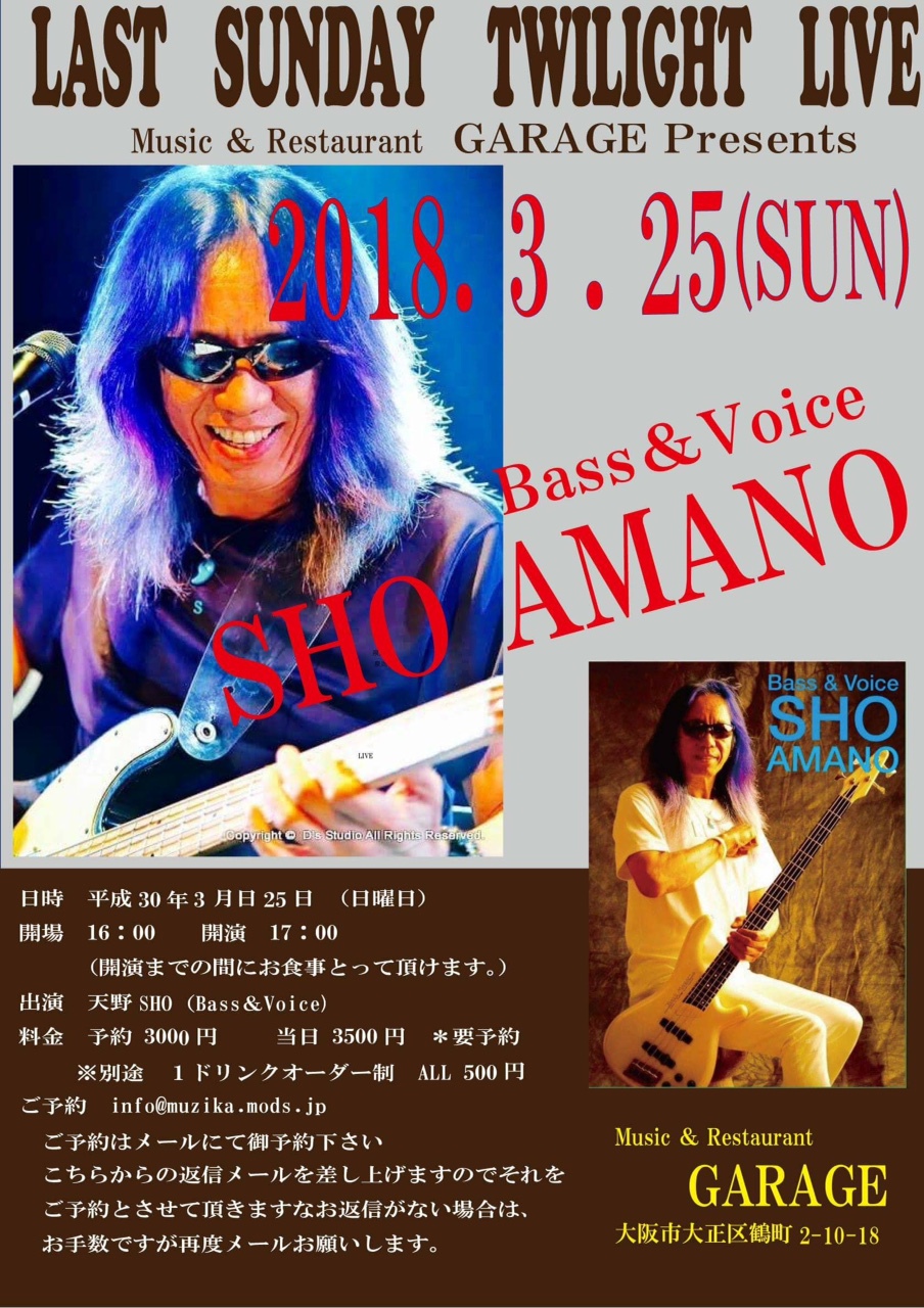 31 @ CHICKEN GEORGE(KOBE 三宮 生田神社西門前)"SHO AMANO★SUNDAY NIGHT LIVE" ★guest: 皇甫純圭(Vo) 【 中止 】