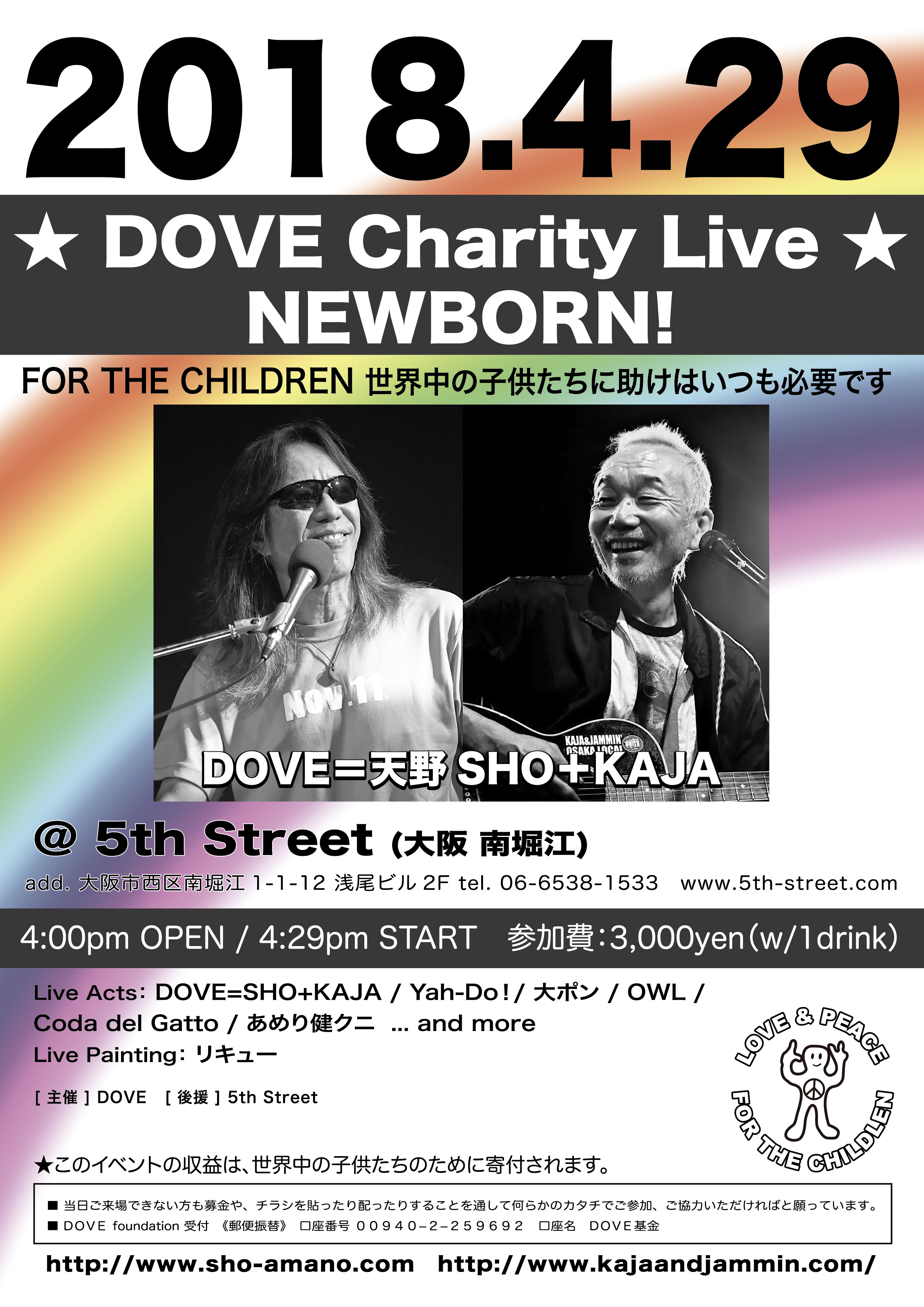29 "429 DOVE Charity Live NEWBORN!2021" 〜同時ライヴ配信〜 @ Wメリケン波止場(KOBE ハーバーランド ホームセンターコーナン駐車場東隣) ★Live Acts:DOVE=SHO+KAJA 【 中止 】