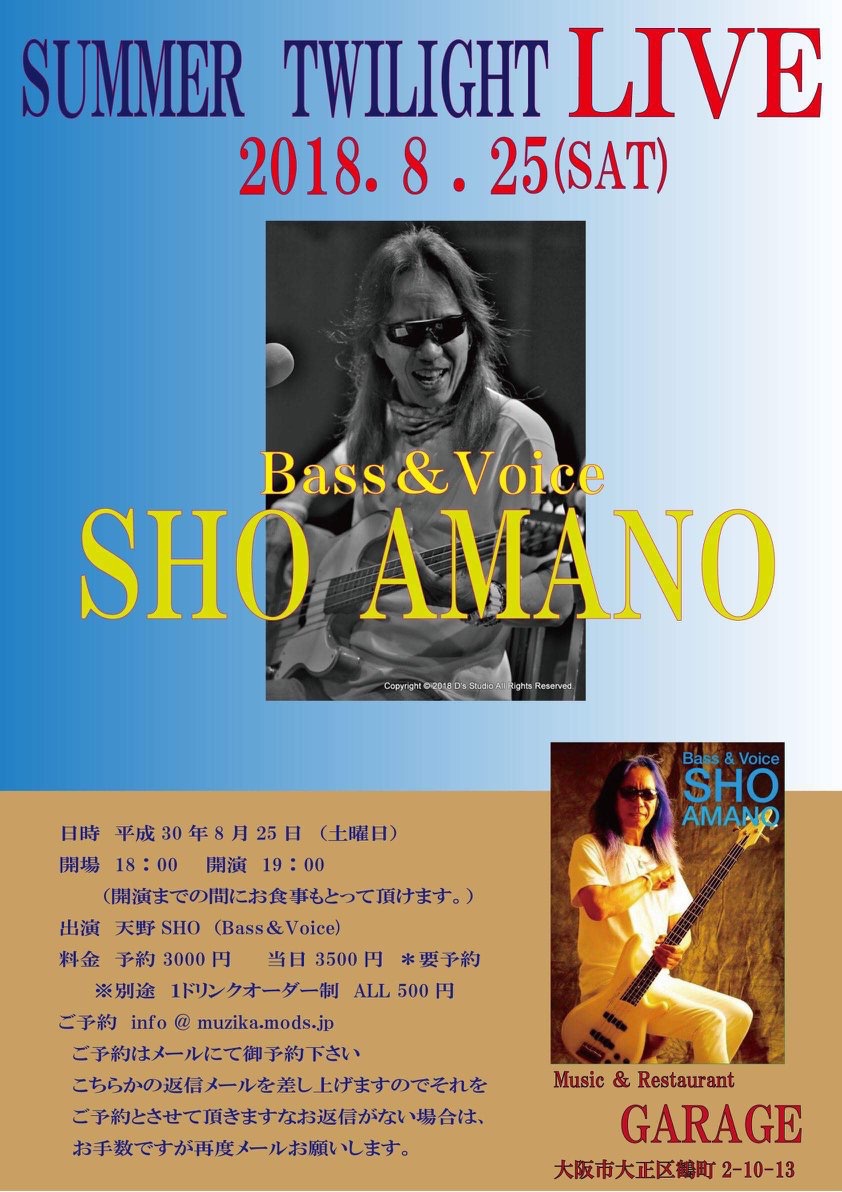 16 @ Live Music NA-YA(KOBE 水道筋)"SHO AMANO SOLO LIVE"【 15名様限定 】