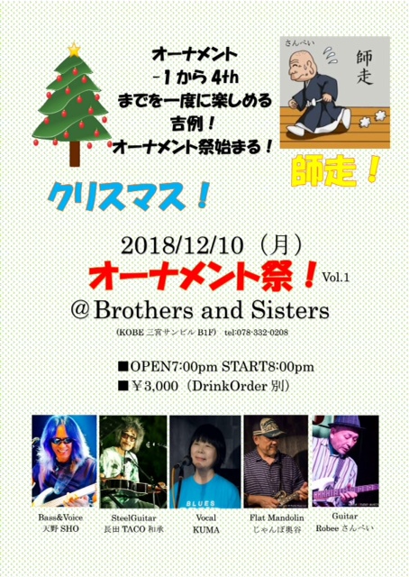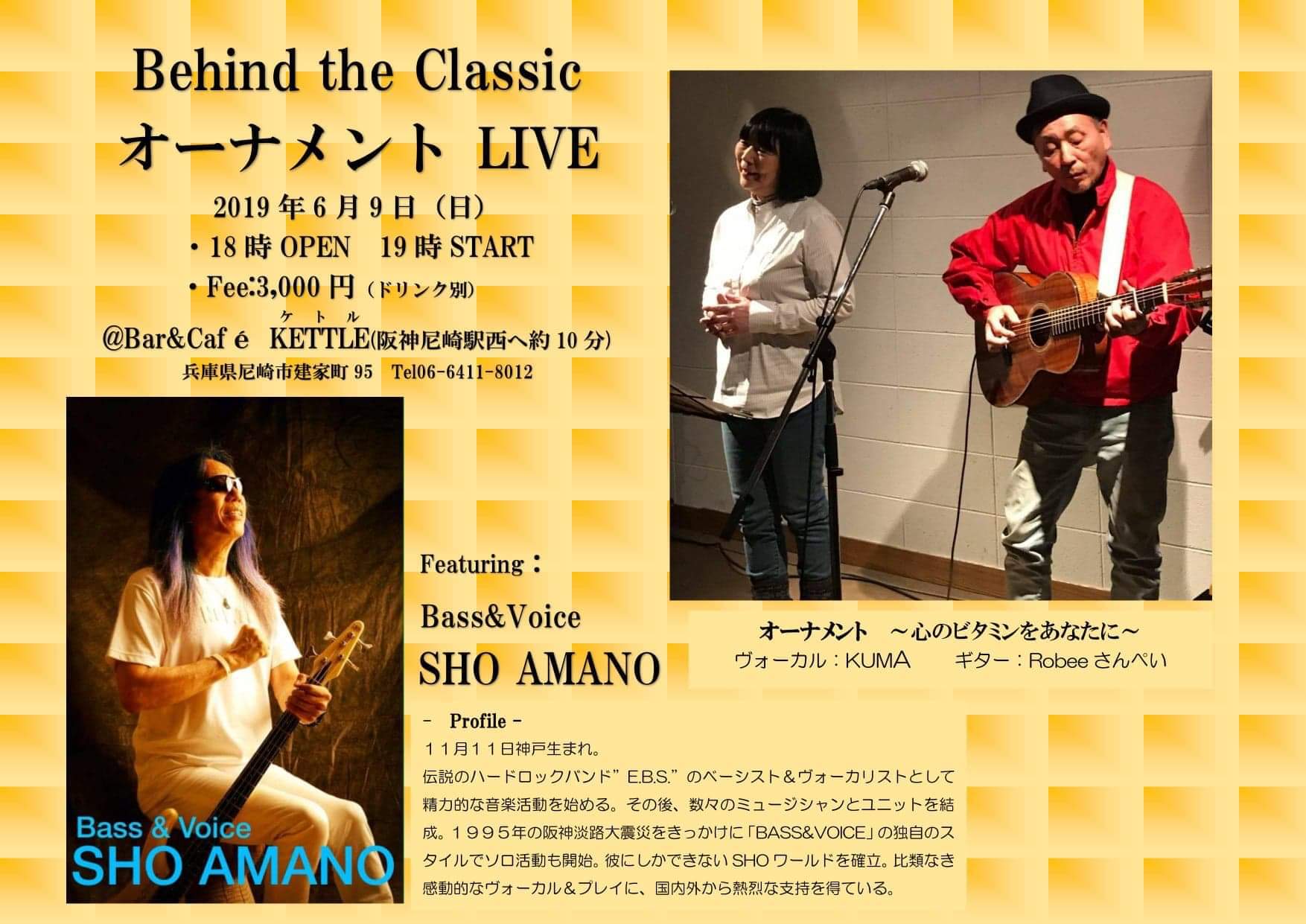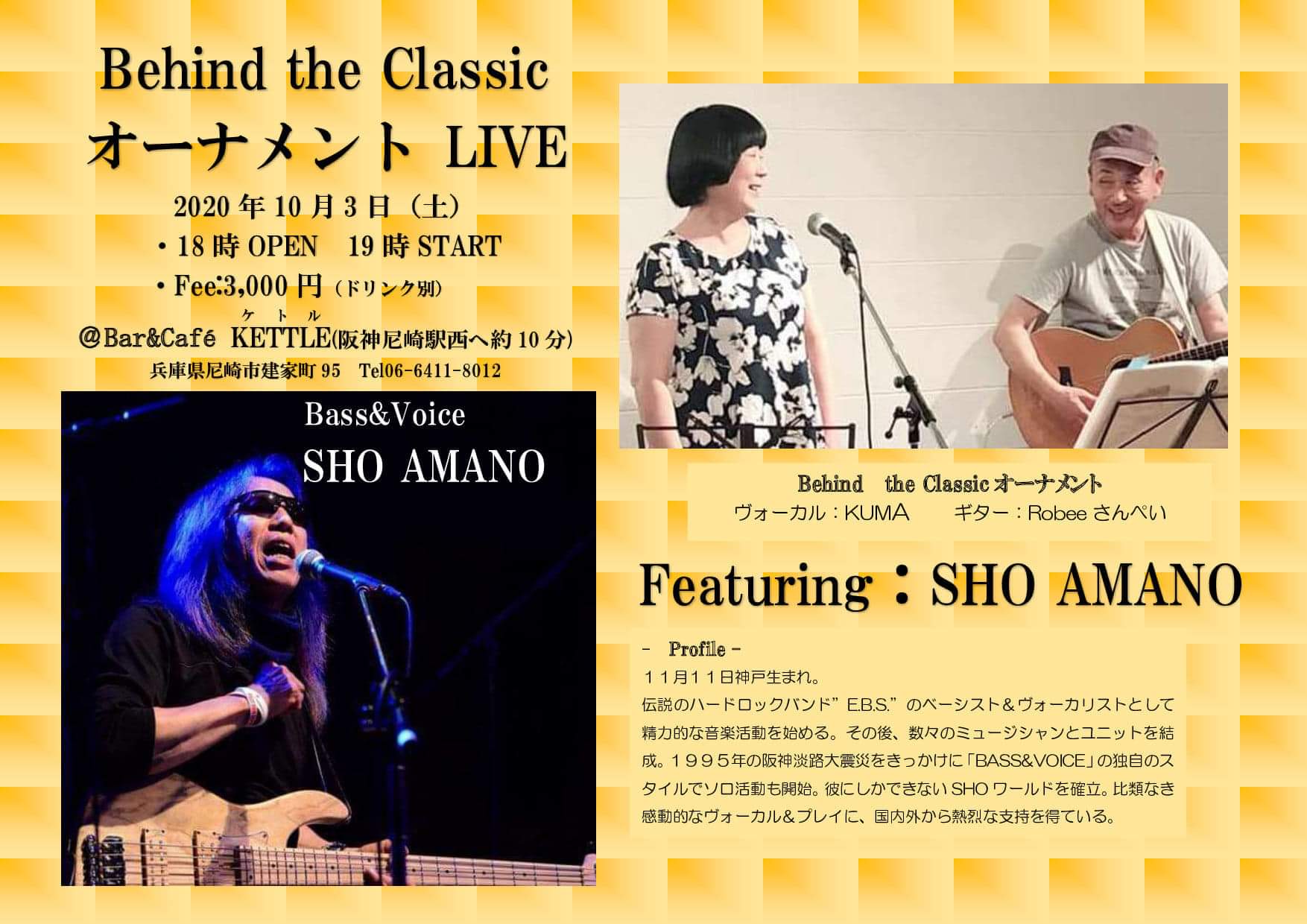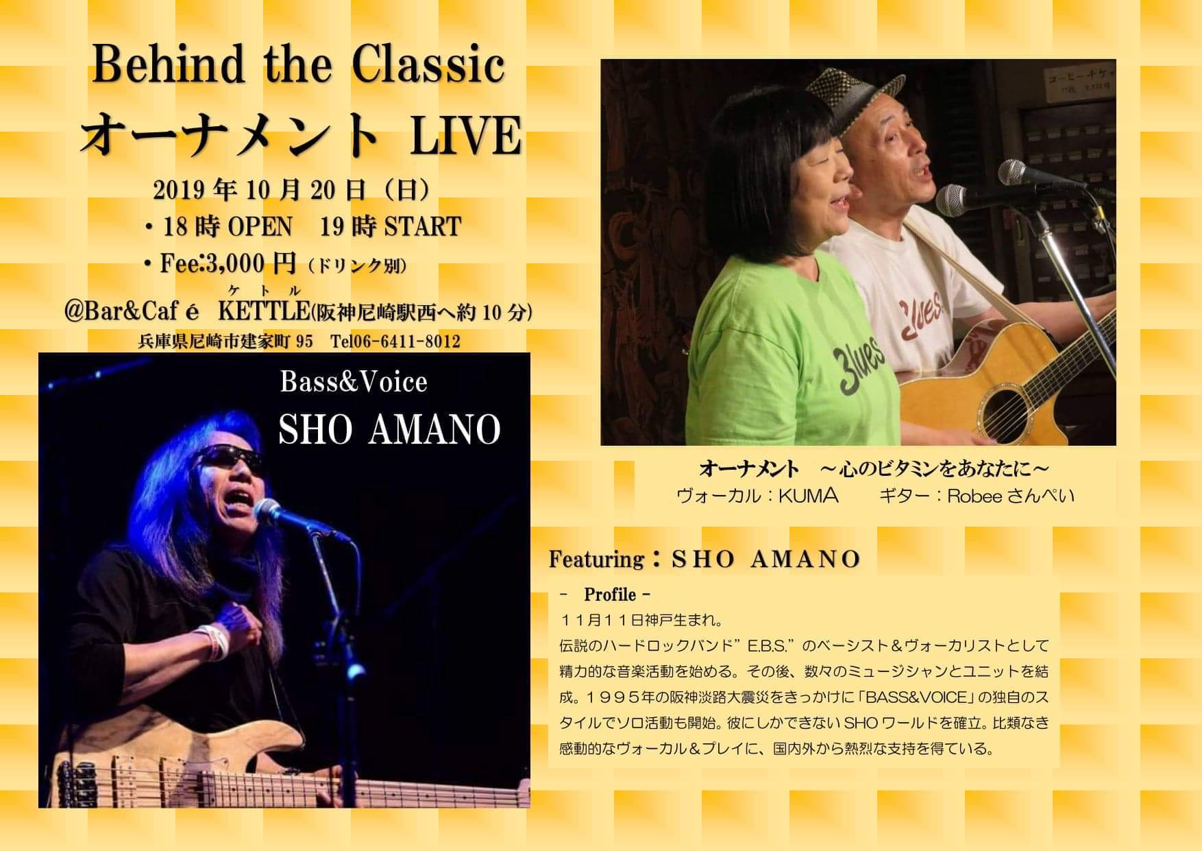 27 @ Bar & café KETTLE(尼崎 建屋町)"オーナメントLIVE 〜 Behind the Classic" ★featuring SHO AMANO