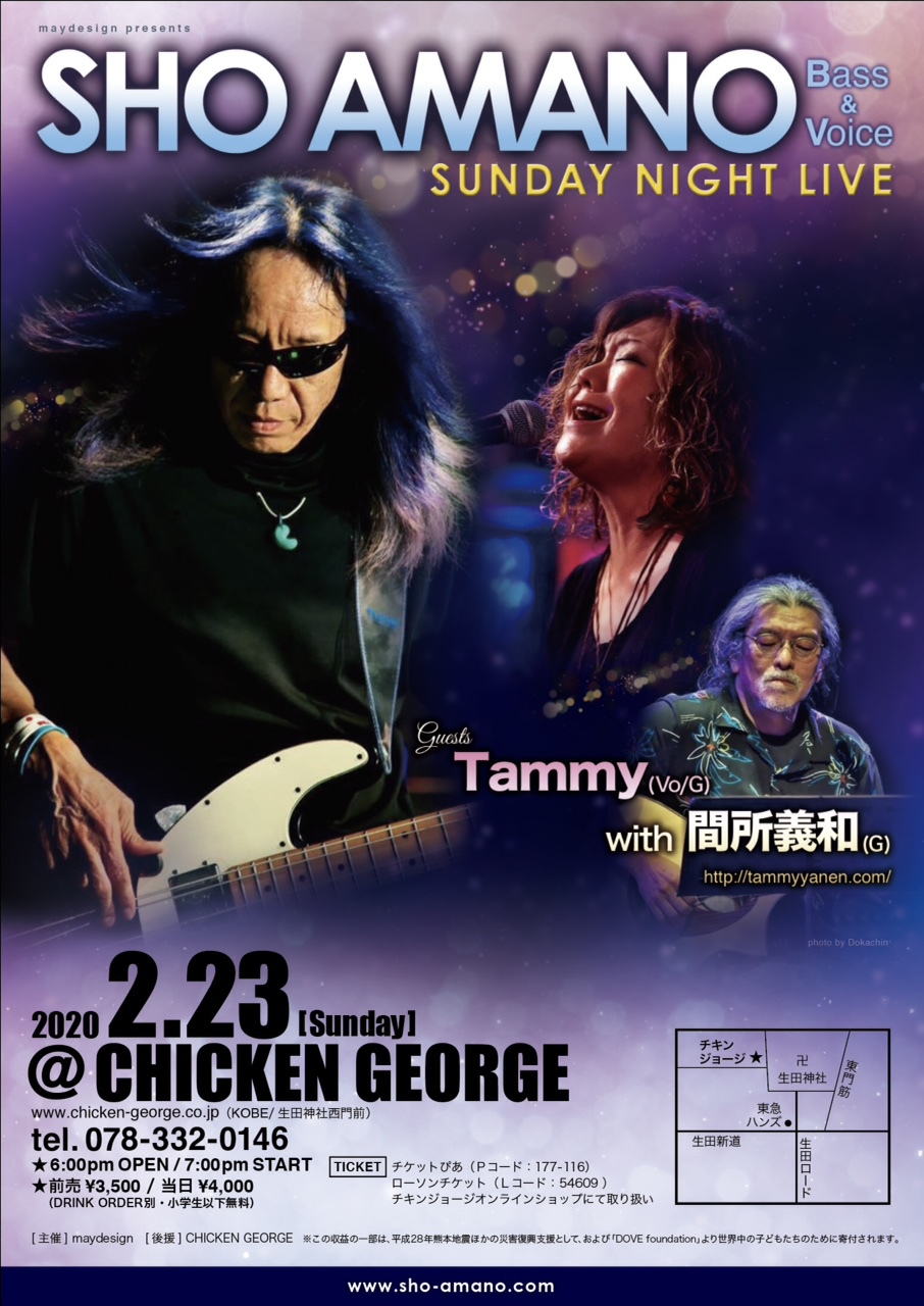 23 @ CHICKEN GEORGE(神戸三宮・生田神社西門前)"SHO AMANO ☆ SUNDAY NIGHT LIVE"★guests:Tammy (Vo/G) with 間所義和 (G)