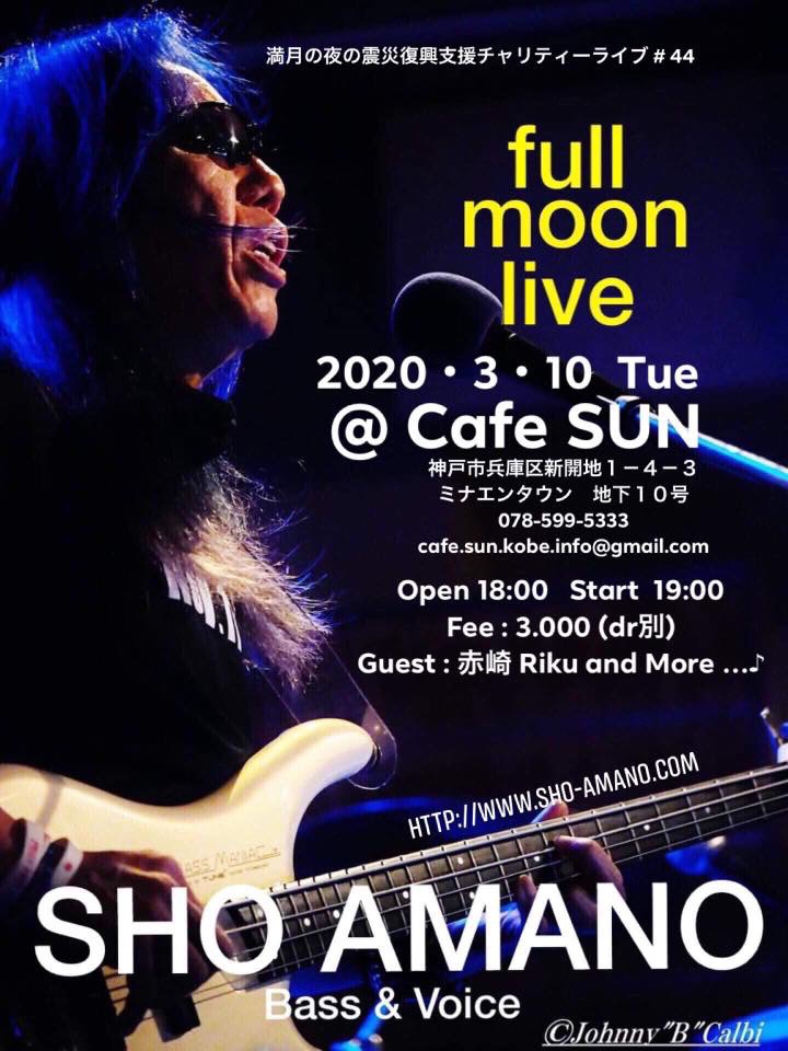 10 @ café SUN(KOBE 兵庫区ミナエンタウンB1)"SHO AMANO ◯ Full Moon Live"〜 満月の夜の災害復興支援チャリティライヴ#44 〜 ★guest:赤崎Riku